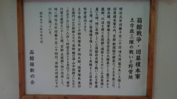 キャンプ場の側に温泉有って、ガスって冷えてたので400円何も無しだが、土方歳三も入った湯、ミネ綿棒ドライヤー只。