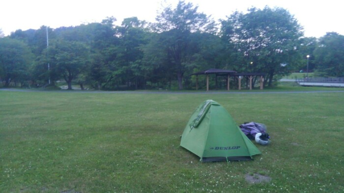 バテバテで走るのやめてキャンプ場受け付け後フロへ。数キロの温泉定休で管理人さんに15分程と教わって、筋肉痛なので同じ湯の市街地の温泉銭湯に、20kmほどだった。