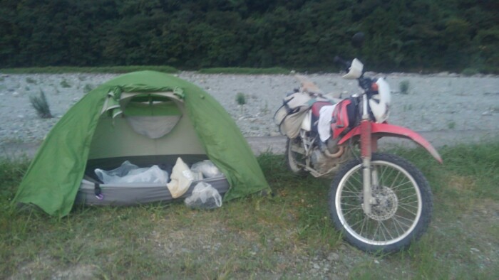 背筋痛いの、エアマットの空気入れすぎで固いのかもしれん、少し減らしてみよ。