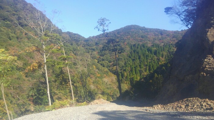 さっき滝探してて間違ってきたとこ、ここからダート、多分抜けられないけど片道10キロほど走れそうなので。