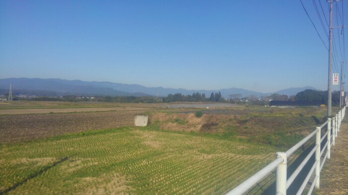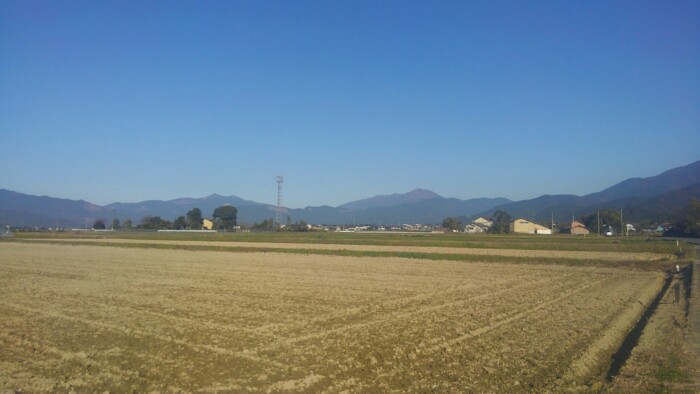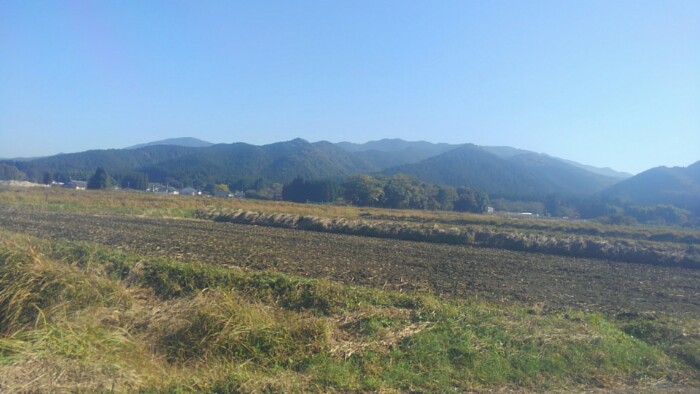 手前の山中で、車がいっぱい停まってて、工事現場かと思ったが重機も無く人もいない。