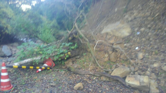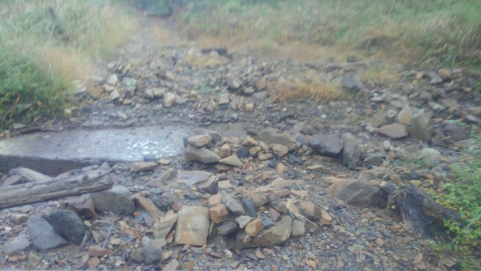 と、落ちててバイク通れるくらいの通路作ってあって、渡ったらちょうど人が歩いてきて、ここまで送ってらって、向こうに車止めてある、七月豪雨って言ってた。