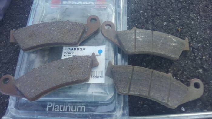 川渡り後効き悪くなった気がして、濡れたせいと思ってたが、なんか悪くてディスクもてかって来た感あるので代えた。