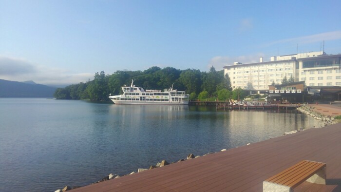 2021/07/13 14:4517軒目。1300が券でただ、9Fからの阿寒湖の眺めよし。露天、サウナ、シャンプー、養毛剤、綿棒等。サウナ外の給水がレモンウォーター、休憩所でミニアイス、黒酢ベリージュース無料。出るときになって屋上に天空風呂あるのに気づいたが、水着着用でバイクにおいてきてた。