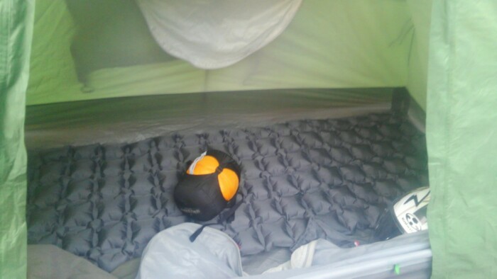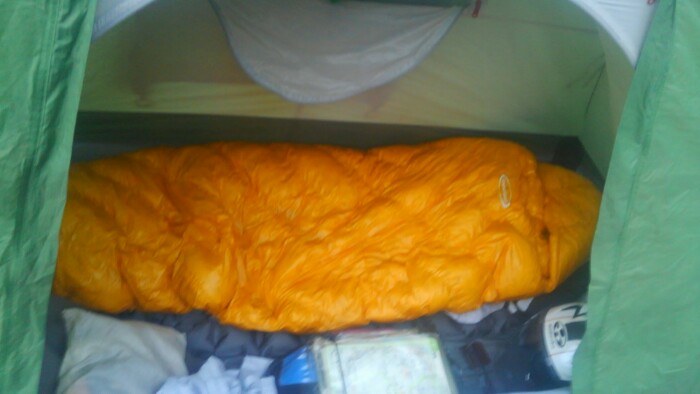 荷物が小さくなったのは、これまでの化繊ダブルシュラフから、快適温度1度の羽毛シュラフ3万、ゲットだじぇー。