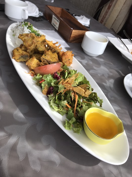 2021/10/21 11:34白身魚のフリッターにシラスご飯。ボリューム満点。