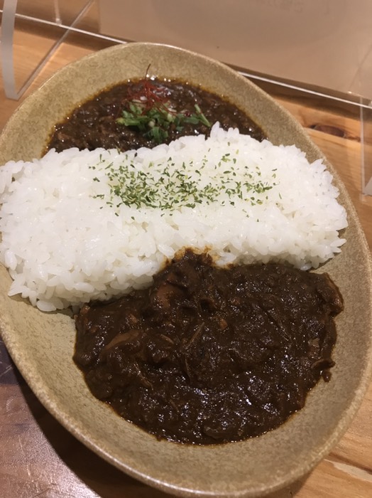 2021/10/30 11:40濃すぎチキンカレーとキーマカレーのダブルゥ。