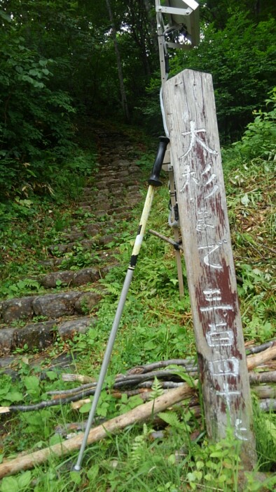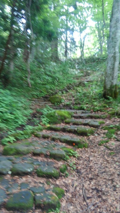 2022/07/14 08:58400段やて、100歩×2と50歩×5毎に1~2分休憩しながら登り15分。杖借りたら楽や。暇やと健康に、、、。