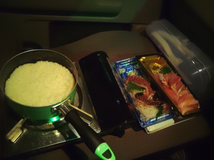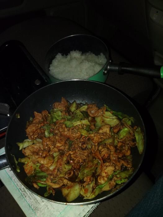 駐車場のすみでラーメン。