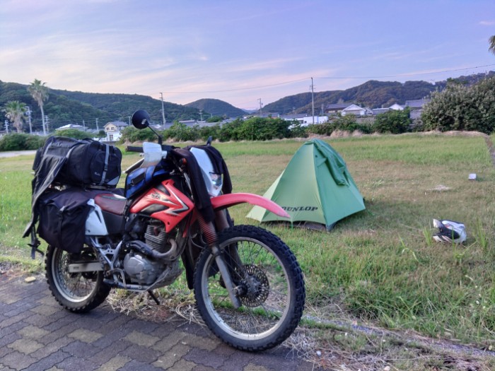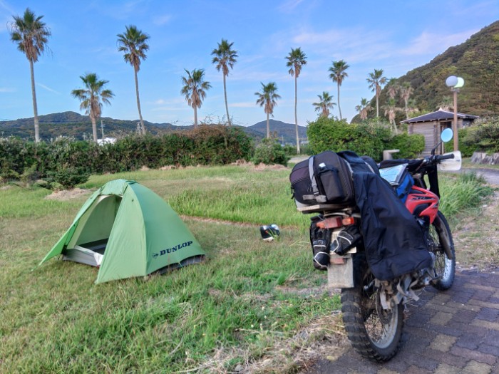 2023/10/26 15:08ここをキャンプ地とする、無料。キャンプ可の情報有り。キャンプについての現地案内は無し、バーベキュー禁止の案内有り。トイレ使用可、照明有り。堤防越しに波の音。トイレの点検ぽい地元の女性の方がスクーターで見えたが、先方よりこんにちはの挨拶だけで、とくにキャンプについての話はなかったので、可と思う。食ってから張ろう。