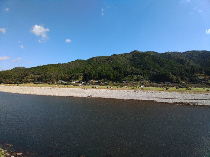 2023/10/28 11:56先週泊まったとこ、ええとこなんでここでまったりしよー思てたけど、どえせまったりするなら家のが楽なんで帰ろー。もう1ヵ所行こ思てたかりんの下も、冬に一回泊まったし、崩れてる場所多くてたぶん数張しか無理やし、夏場は水場で大混雑なんで。