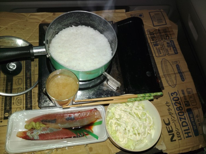 2023/12/23 18:13今日は女川産の天然ヒラマサとキャベツと味噌汁。