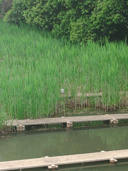 2024/04/28 09:17南隣の池に久々に青鷺2羽目、中央。念のため戻って確認したら1羽目もちゃんと居た。