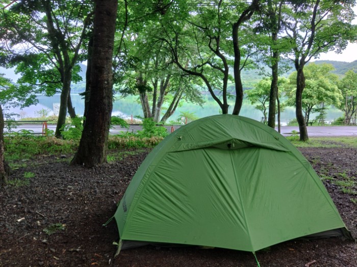 2024/06/04 16:54ここをキャンプ地とする。無料、オンライン予約/申込要。ただし、14区画(車中泊区画4含む)中11区画が予約で埋まっているが、実際に設営されているのは3区画け。