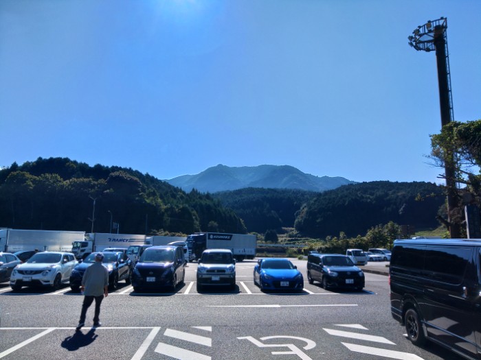 ここをキャンプ地とする。無料。過去バイクで二泊、一応テントも積んでるが受付時間終わってたのもあって駐車場で車中泊~。