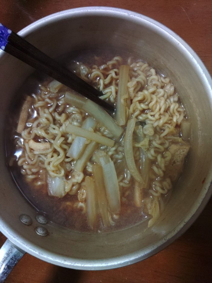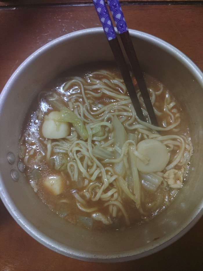 連続夜勤後日勤ヘルプして昨夜戻りの嫁はん~今日の夜勤入りに備えて寝てるのでインスタント味噌ラーメンにプラス~