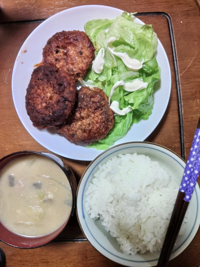冷めても旨いおかんのハンバーグ~連日の夜勤から昨日はそのまま日勤ヘルプして夜戻りの嫁はんが、今晩の夜勤に備えて寝る前に作っておいてくれた~今夜は近場やから送り迎え~明日は時間が出来たので散歩~