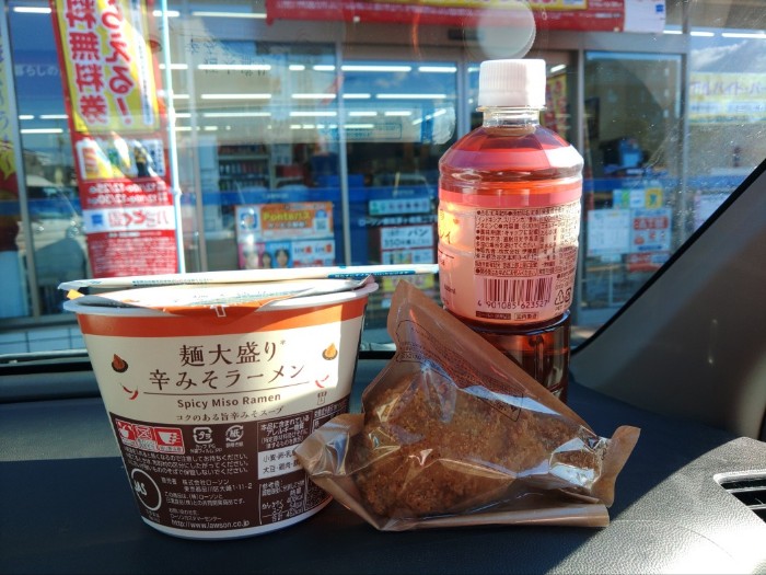 朝夜勤明けの嫁はんを迎えに行ってから2つ3つお使いを挟みながら散歩のついでにPontaパスのLAWSONクーポンでチキン100円引きとお茶無料~飲まんけど~