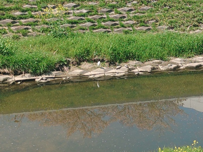 2025/04/11 08:13右端に止まったら~それまで舞ってた白鷺3羽も~こんなん初めて~