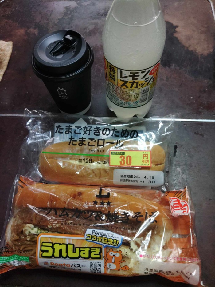 2025/04/15 12:22PontaパスのLAWSONクーポンで~カツそばパン半額と~コーヒー無料~そしてパン代350円超えでドリンク1本無料~