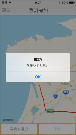 このボタンを押すと、画面が地図画面に切り変わって、その写真の撮影地点までスクロールします。
