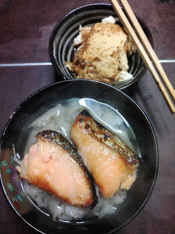 2026/03/08 19:19昼飯が遅めで少し多かったので~鮭茶漬け~